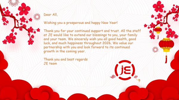 আপনার অবিরত সমর্থন এবং বিশ্বাসের জন্য আপনাকে ধন্যবাদ. JE-এর সমস্ত কর্মীরা আপনাকে, আপনার পরিবার এবং আপনার দলের প্রতি আমাদের আশীর্বাদ জানাতে চাই। আমরা আন্তরিকভাবে 2026 জুড়ে আপনার সকলের সুস্বাস্থ্য, সৌভাগ্য এবং অনেক সুখ কামনা করি। আমরা আপনার সাথে আমাদের অংশীদারিত্বকে মূল্যায়ন করি এবং আগামী বছরে এটির অব্যাহত বৃদ্ধির জন্য উন্মুখ।